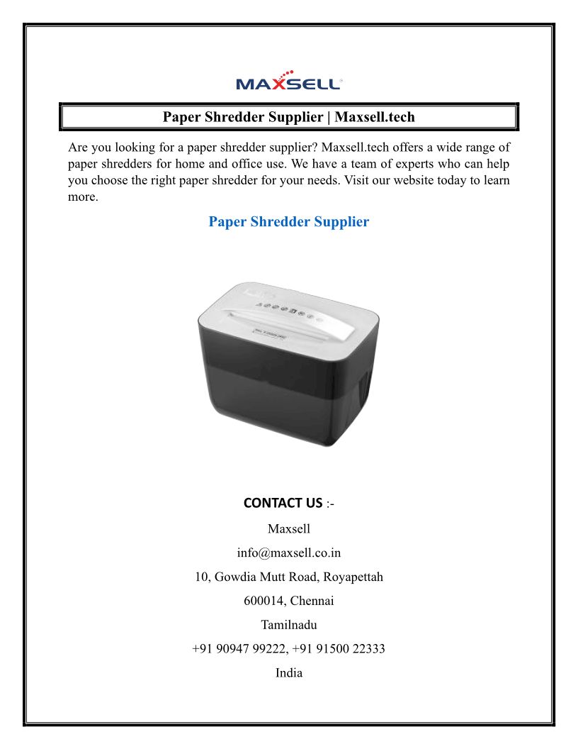 Paper Shredder Supplier Max...