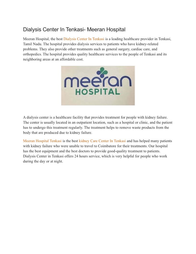 Dialysis Center In Tenkasi- ...