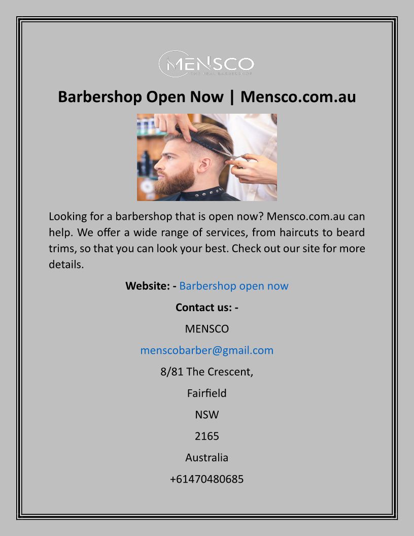 Barbershop Open Now Mensco....