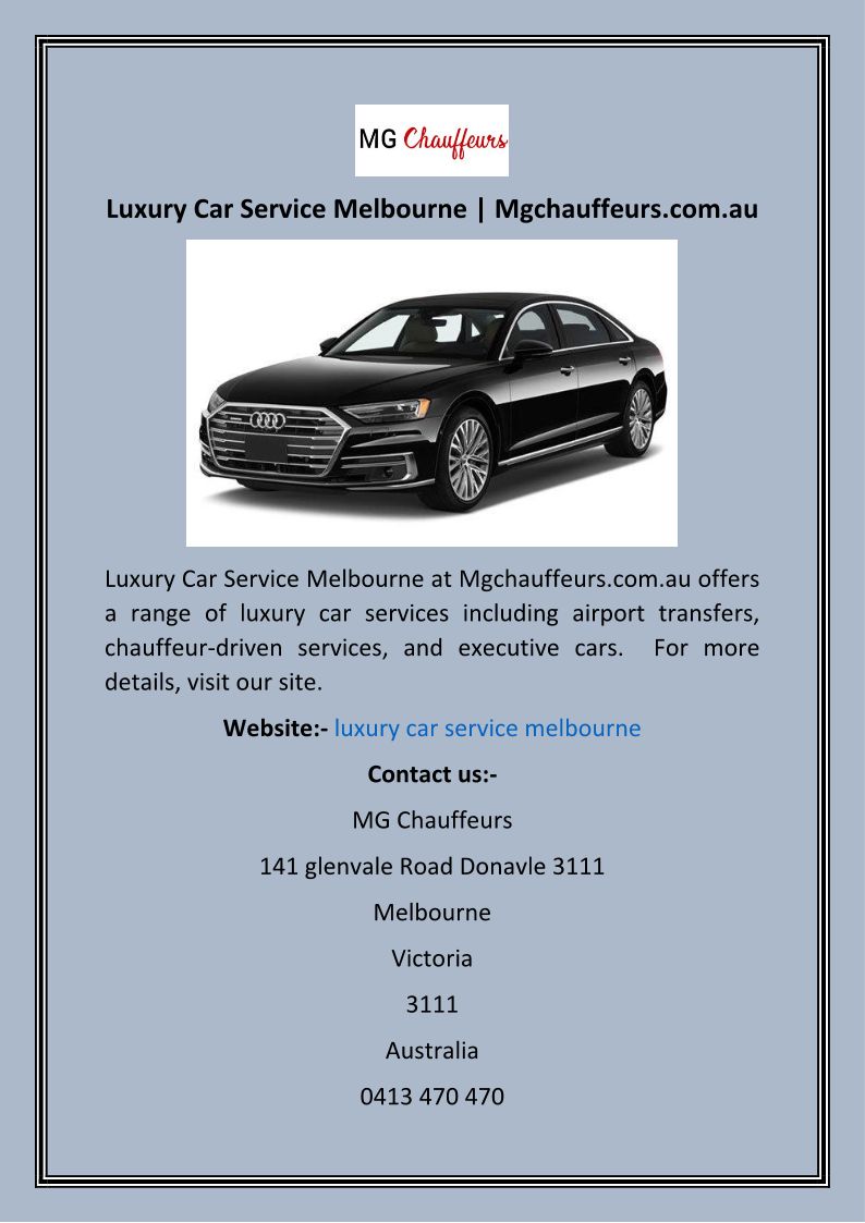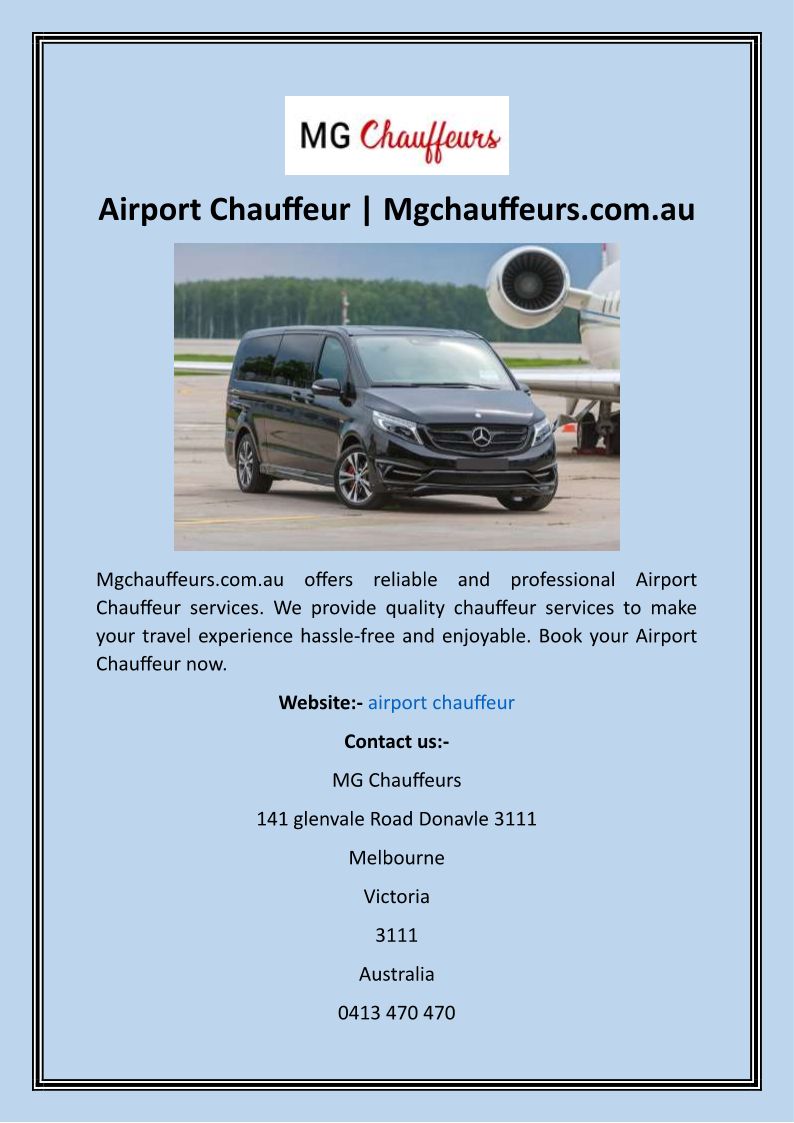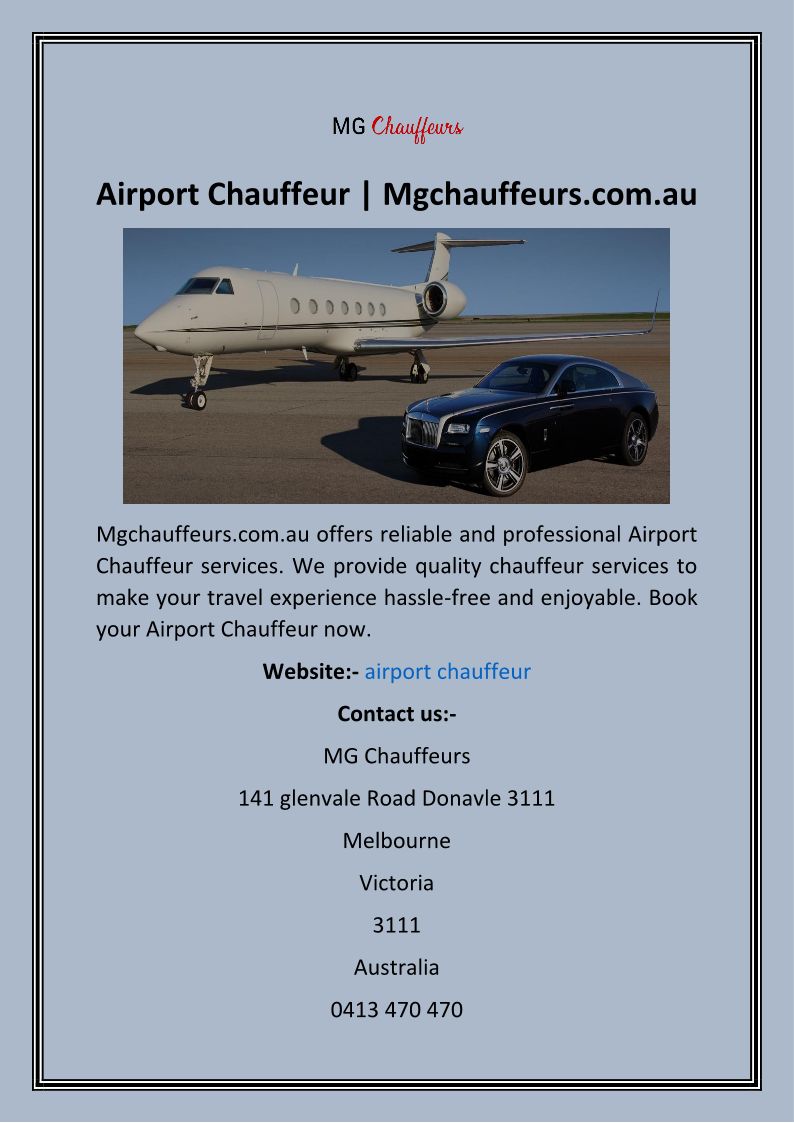 Mgchauffeurs.com.au offers reliable and professional Airport Chauffeur services. We provide quality chauffeur services to make your travel experience hasslefree