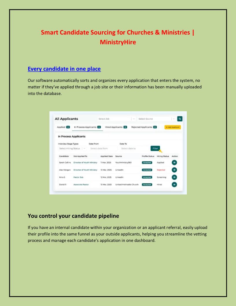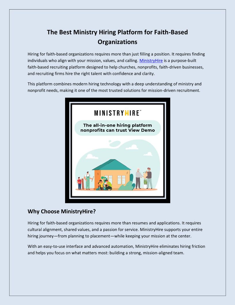 MinistryHire helps churches, ministries, and nonprofits hire the right people faster.
