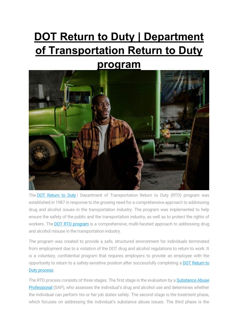 DOT Return to Duty Departme...