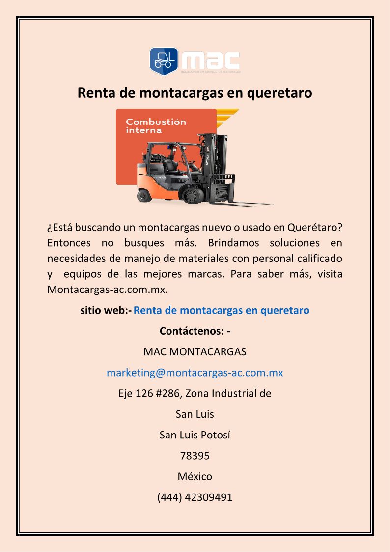 Renta de montacargas en quer...