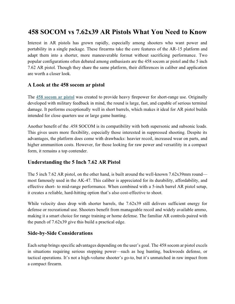 458 SOCOM vs 7.62x39 AR Pist...