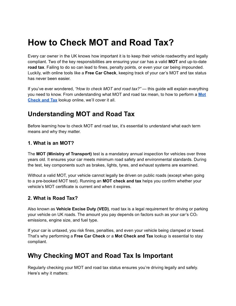 Check MOT and Road Tax