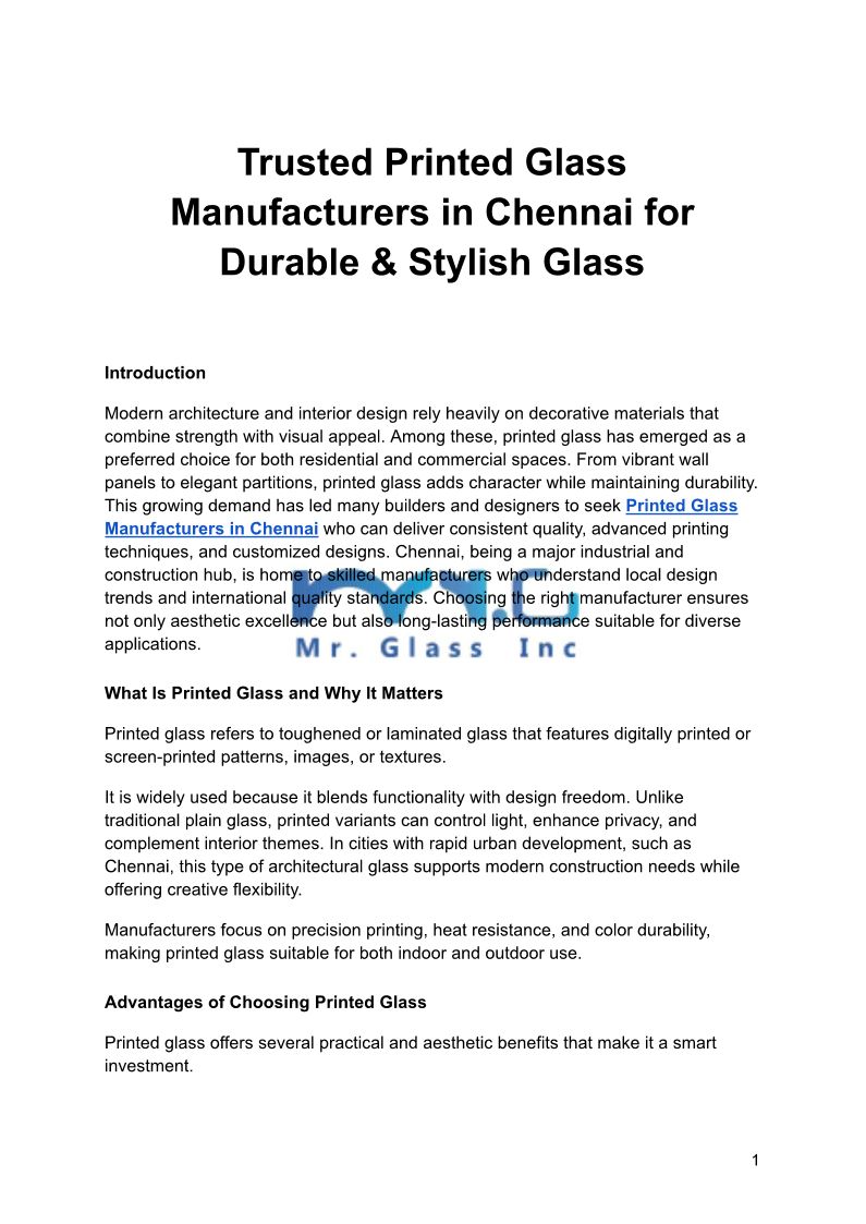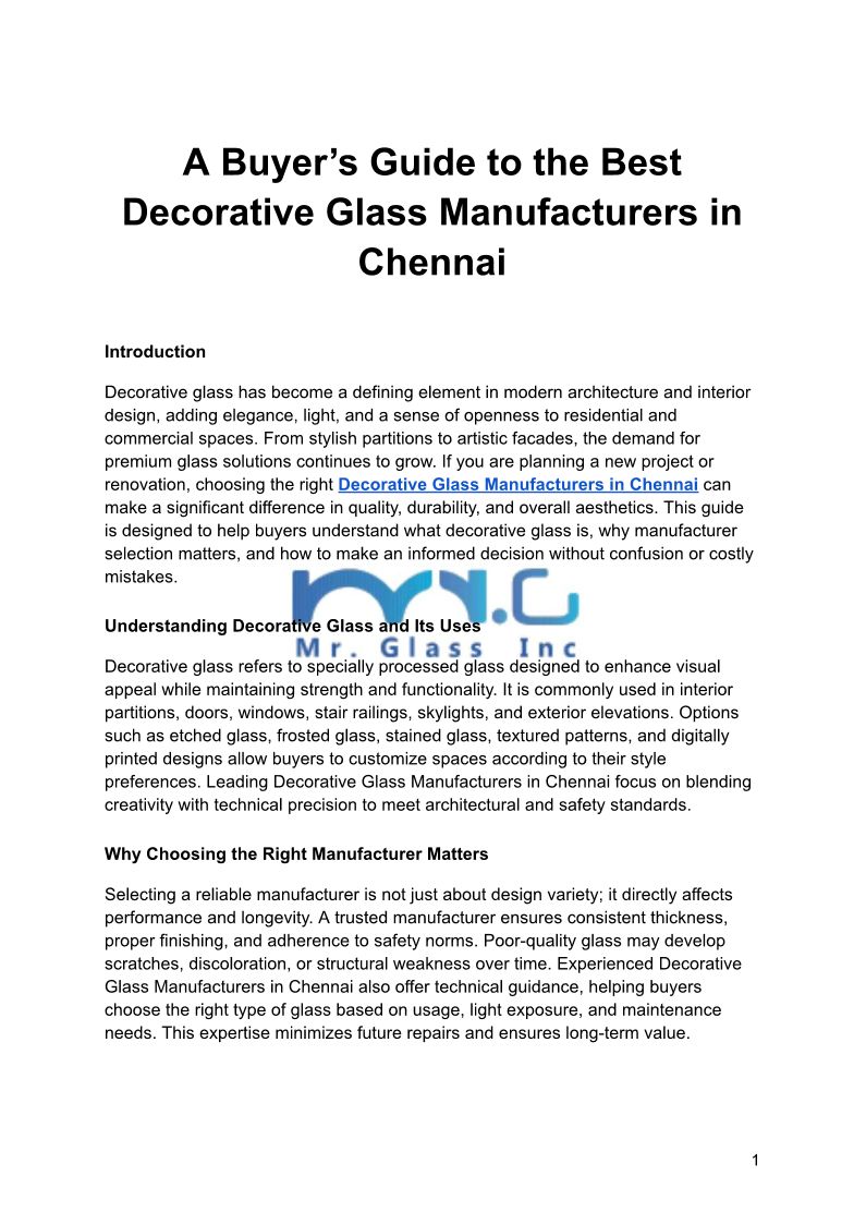 Mr Glass, leading Toughened Glass Manufacturers in Chennai, offers quality glass solutions for elegant spaces.