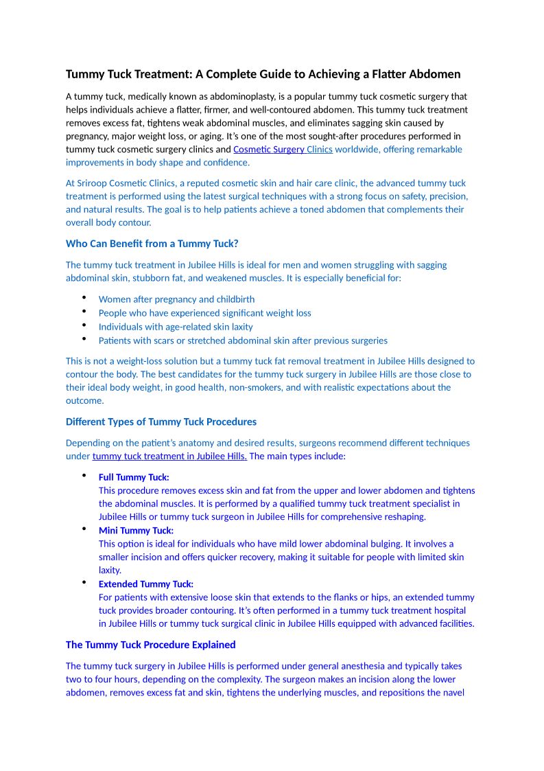 Tummy Tuck Treatment- A Comp...