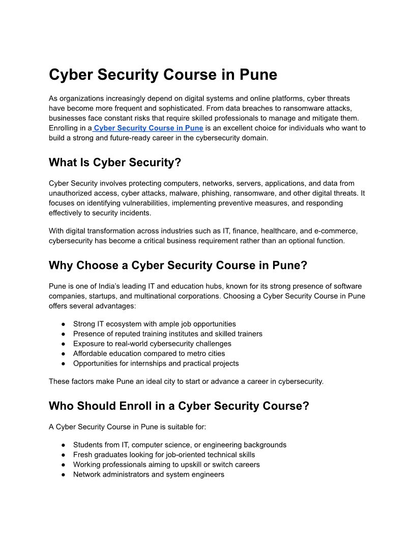 Cyber Security Course in Pun...
