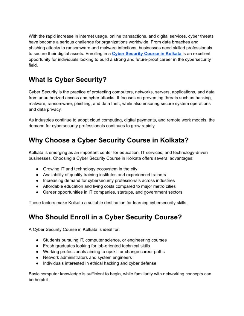 Cybersecurity Course in Kolk...