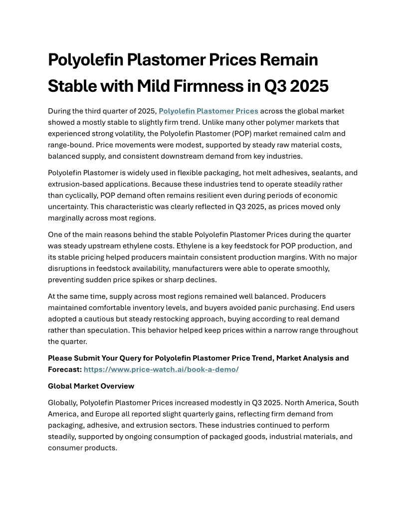 Polyolefin Plastomer Prices ...