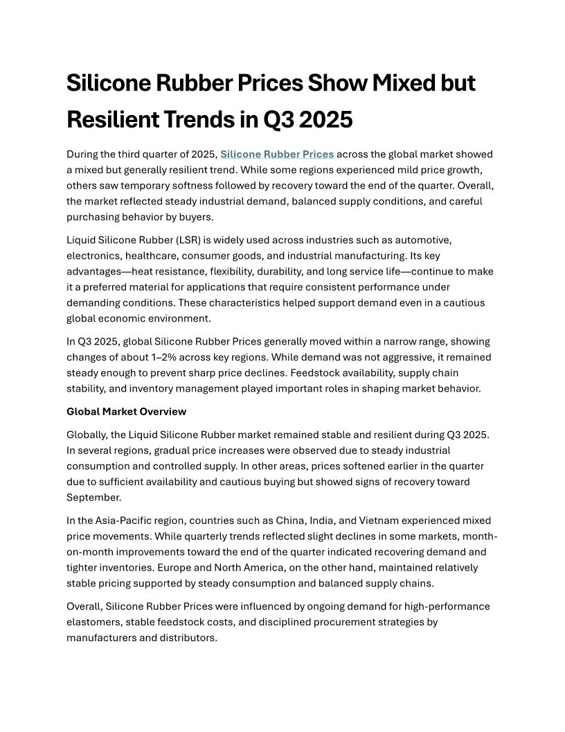 Silicone Rubber Prices Analy...