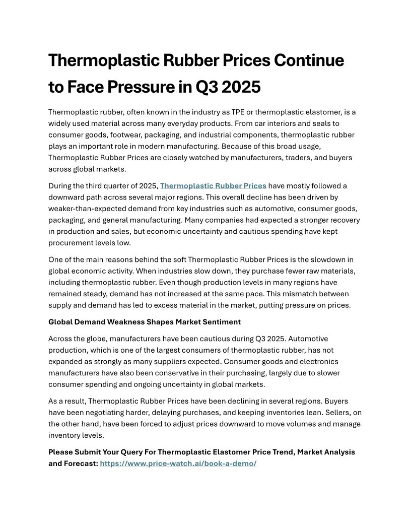 Thermoplastic Rubber Prices ...
