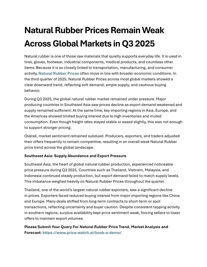 Natural Rubber Prices, Trend...
