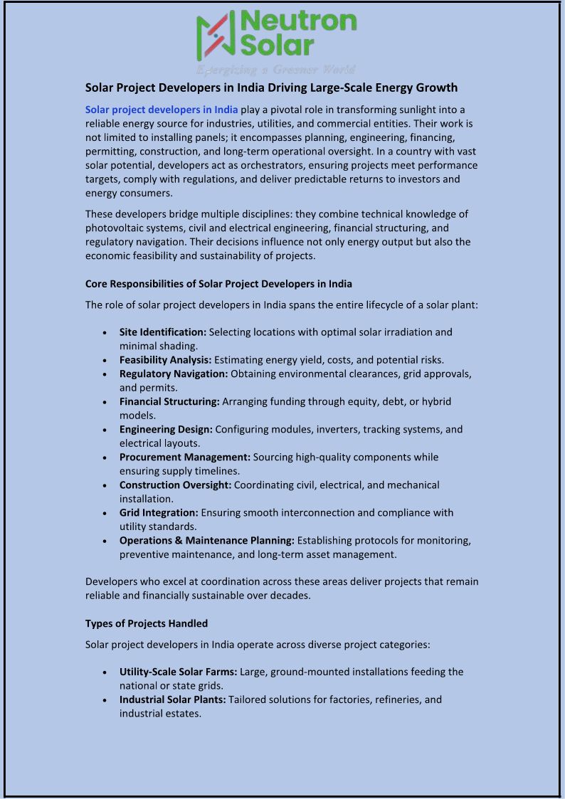 Solar Project Developers in ...