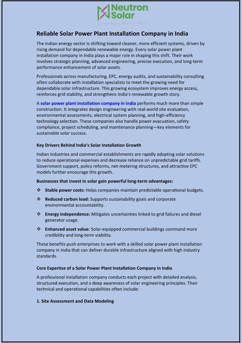 Reliable Solar Power Plant I...