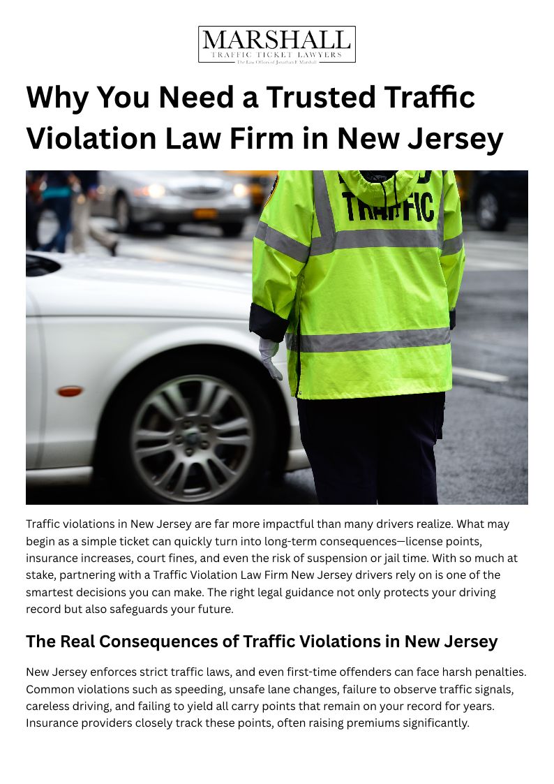 With decades of experience, The Law Offices of Jonathan F. Marshall is a trusted name when it comes to handling traffic violations across New Jersey.