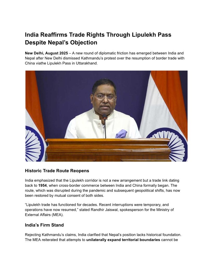 Lipulekh Pass Despite Nepal�...