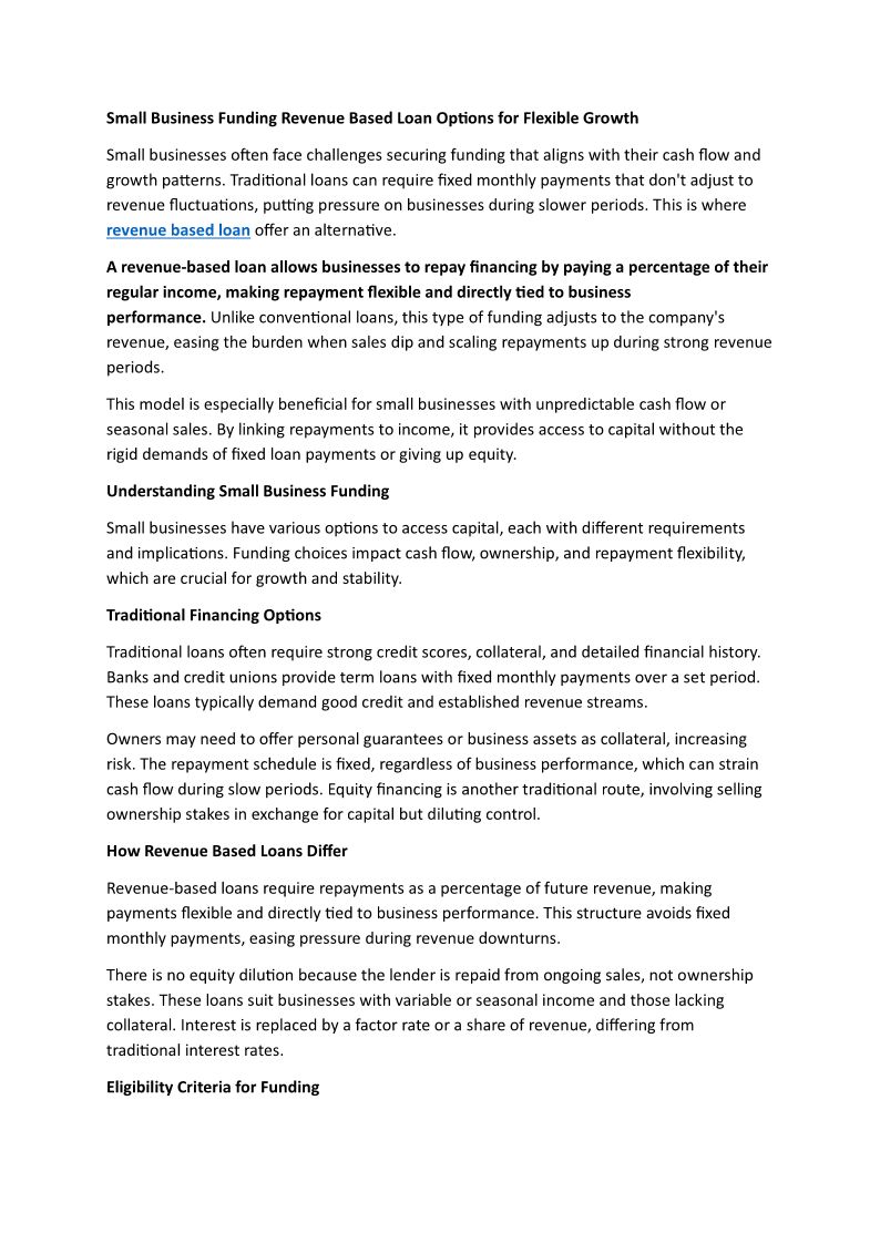 Small Business Funding Reven...