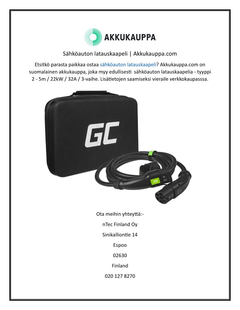 Sähköauton latauskaapeli ...