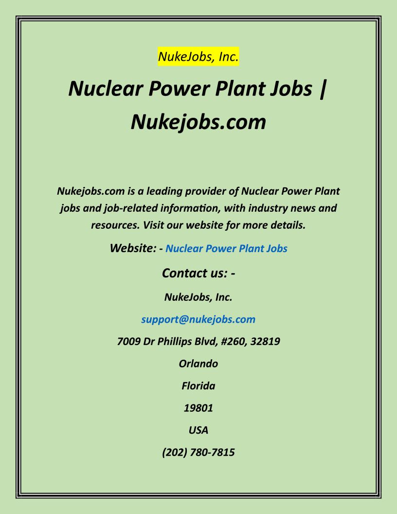 Nuclear Power Plant Jobs Nu...
