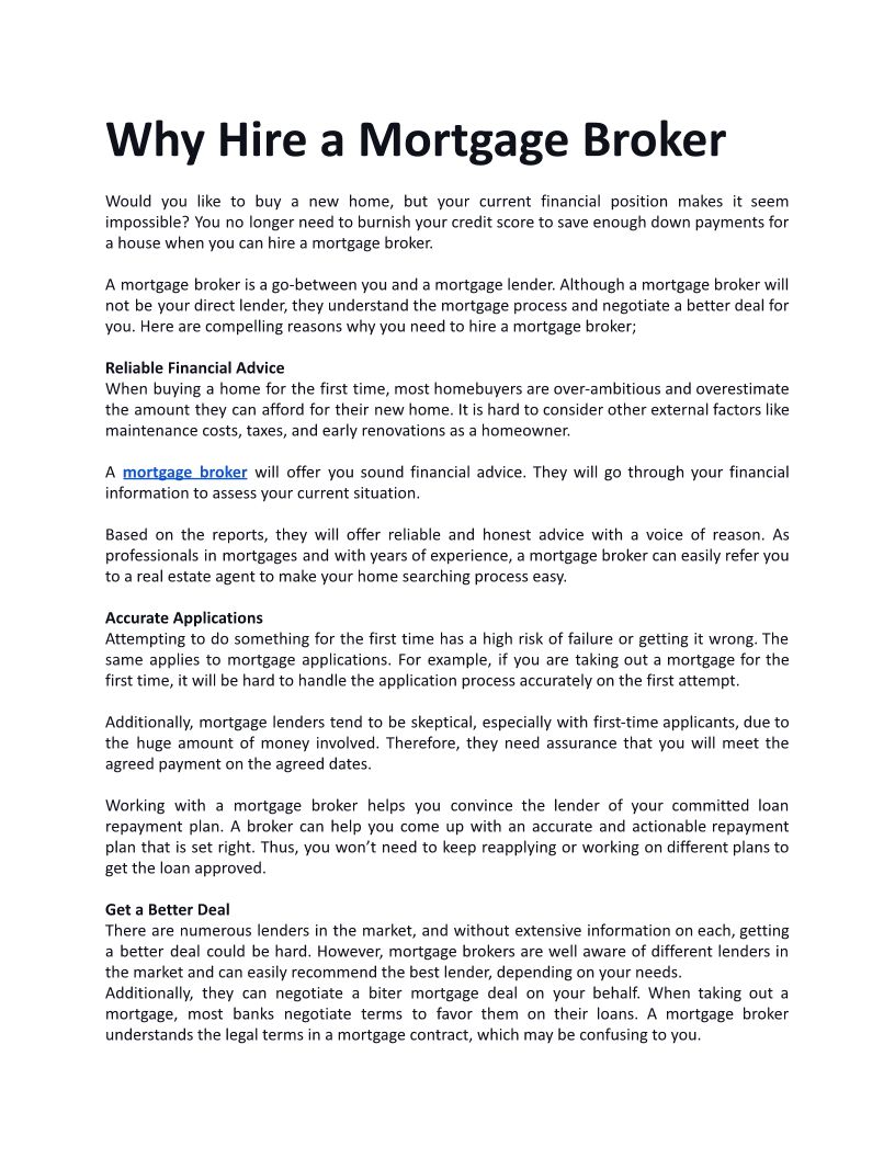 Why to Hire A Mortgage Broke...