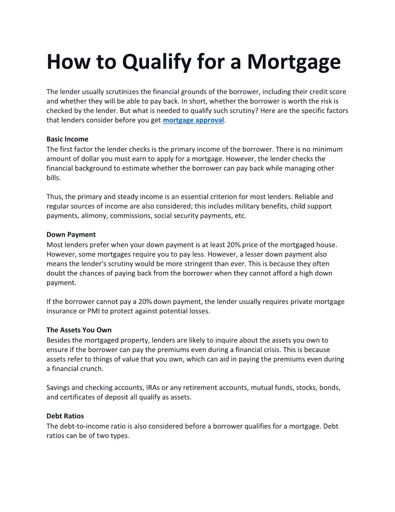How to Qualify For a Mortgag...
