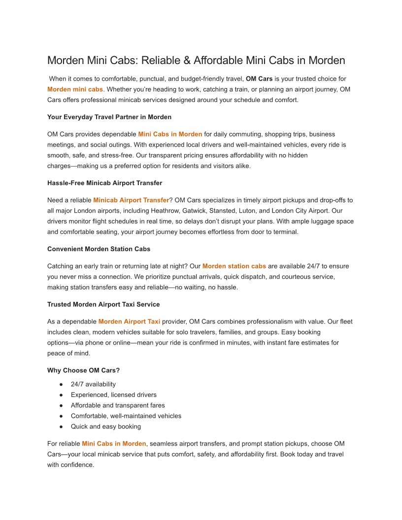 Morden Mini Cabs_ Reliable &...