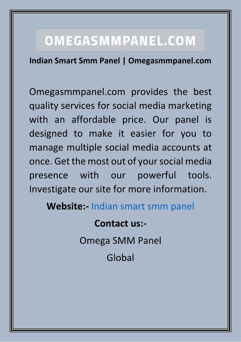 Indian Smart Smm Panel Omeg...