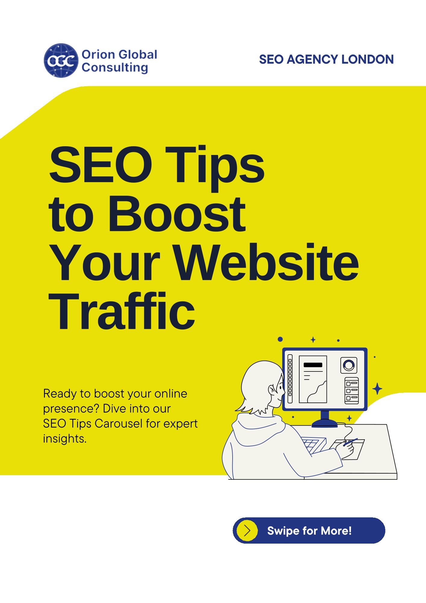 "We're Orion Global Consulting, a UK-based team that helps businesses with things like SEO, website development, and branding. We don't believe in one-size-fits
