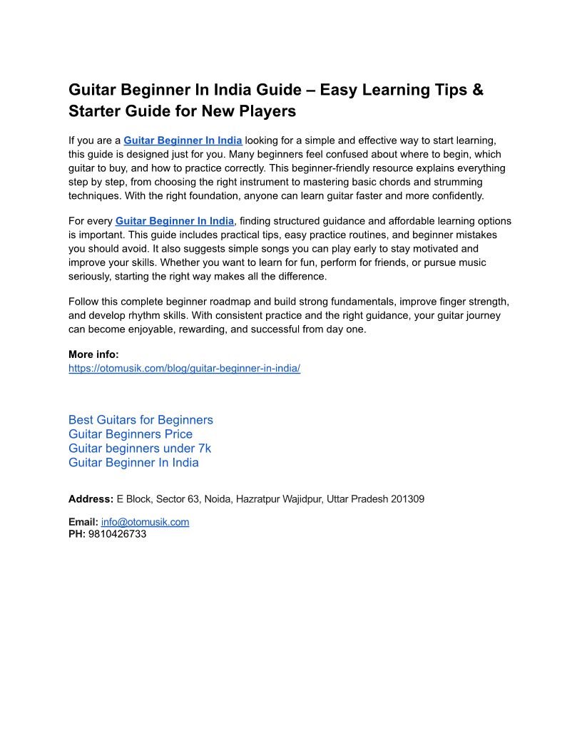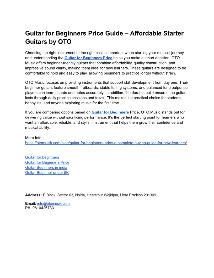OTO Music India Pvt. Ltd. is a music brand that makes quality, affordable guitars and musical accessories for players at every level. They focus on comfort, dur