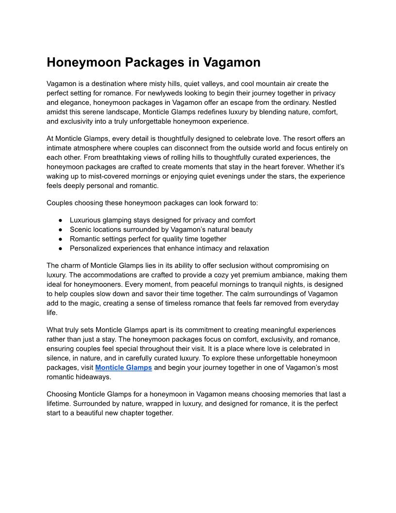 Honeymoon Packages in Vagamo...