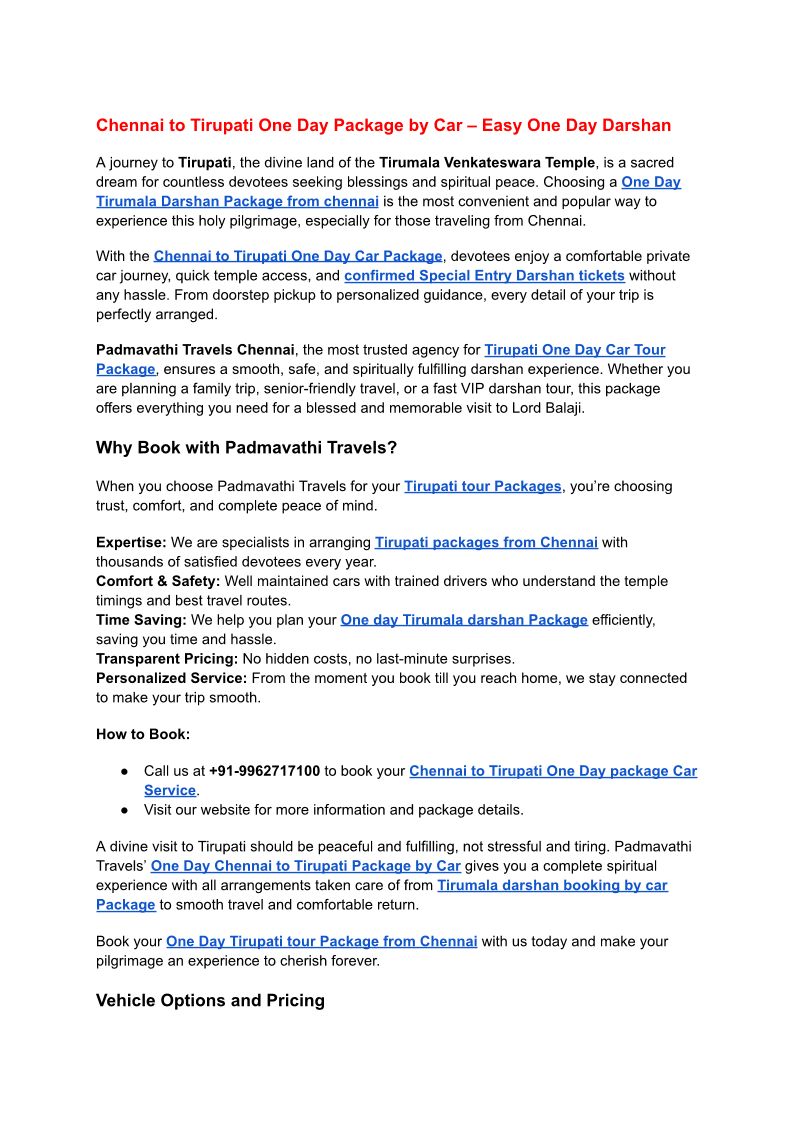 Chennai to Tirupati One Day ...