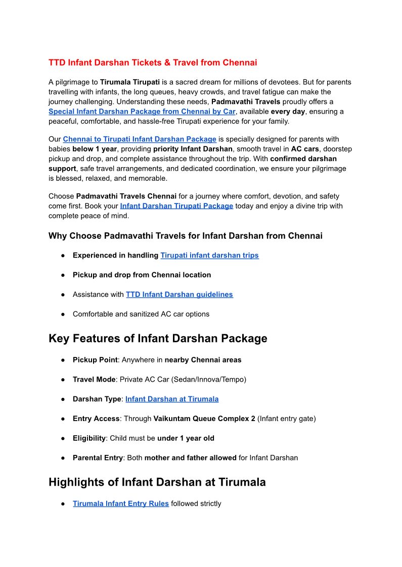 TTD Infant Darshan Tickets &...