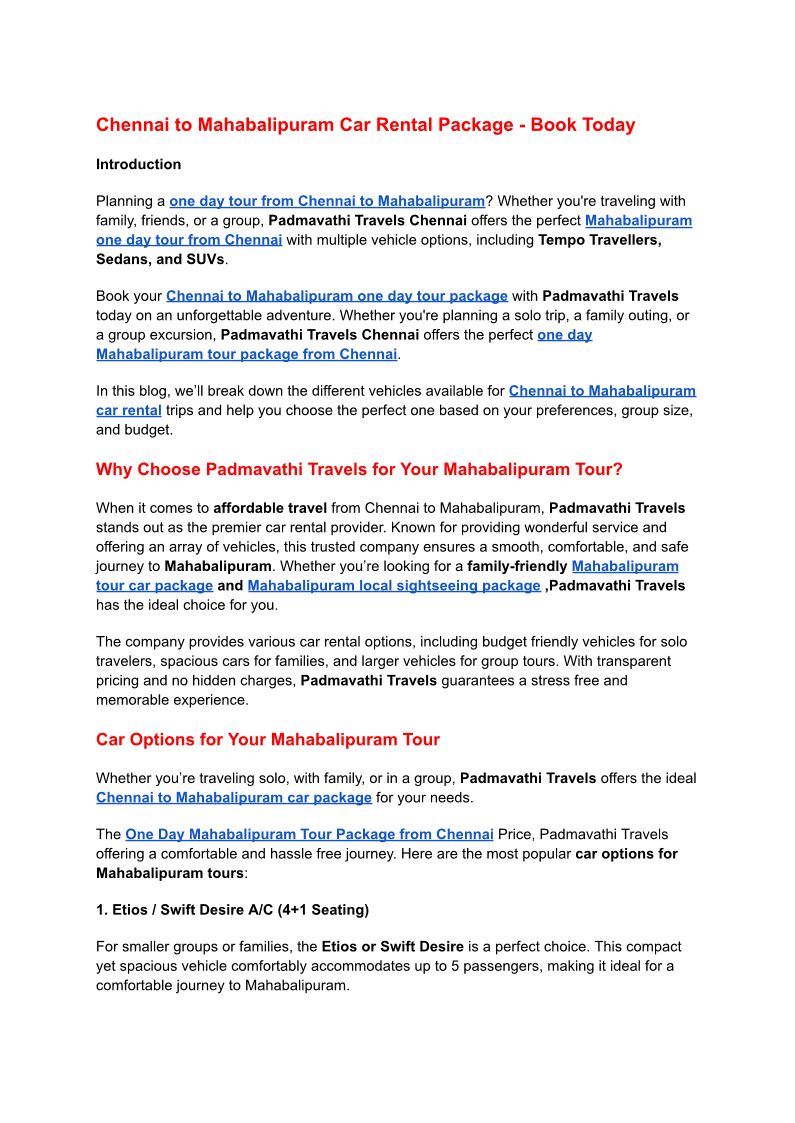 Chennai to Mahabalipuram Car...