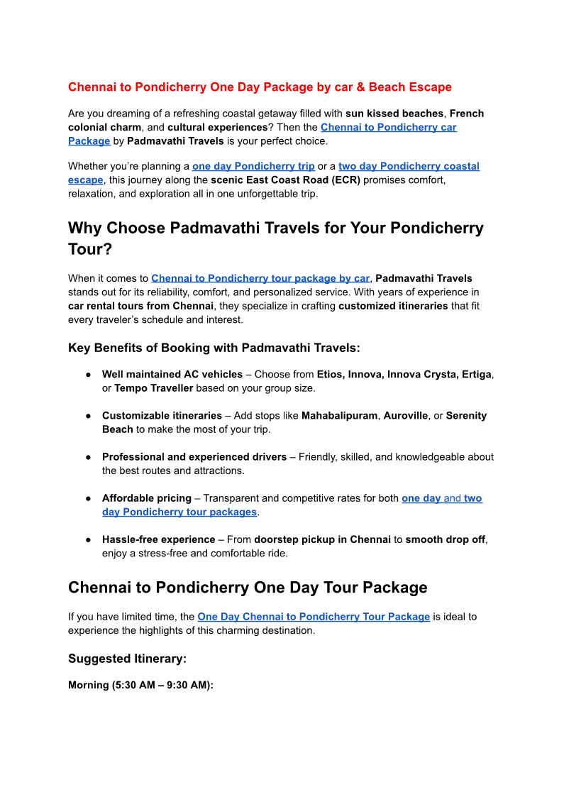 Chennai to Pondicherry One D...
