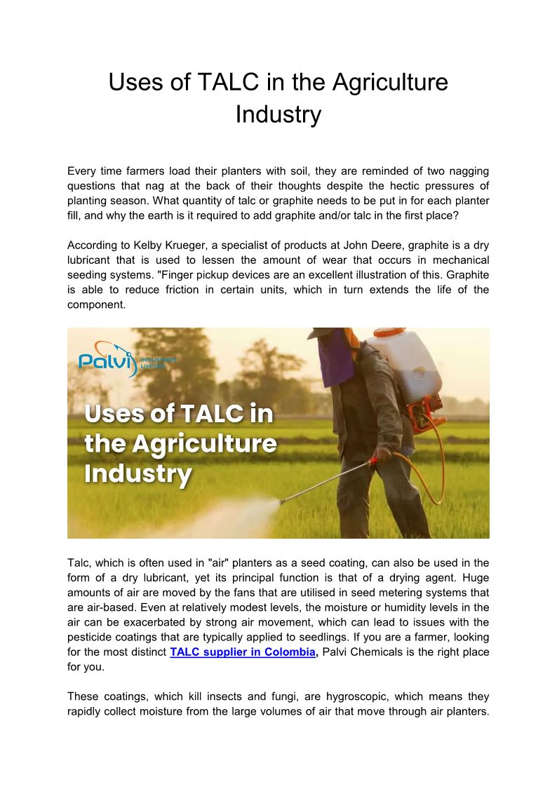 Uses of TALC in the Agricul...