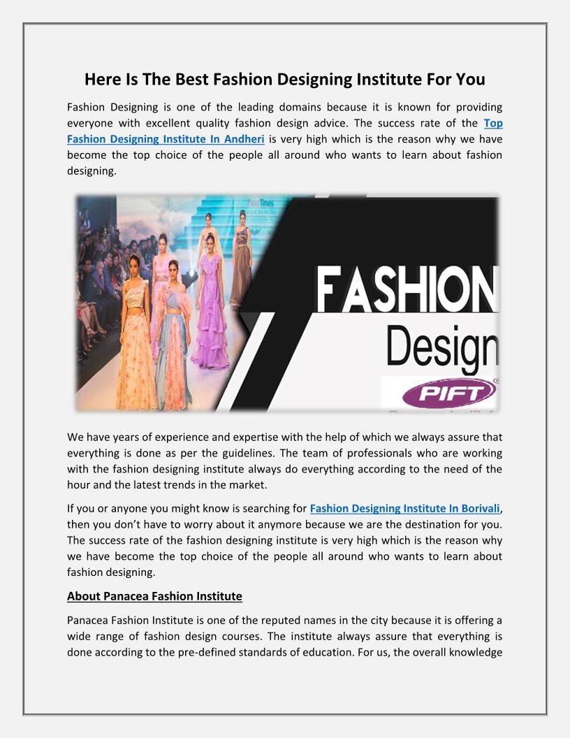 Panacea Fashion Institute is one of the leading names in Mumbai, as it is offering everyone the best courses which are designed flawlessly.