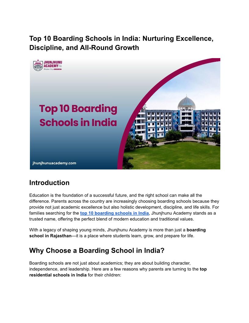 Top 10 Boarding Schools in I...
