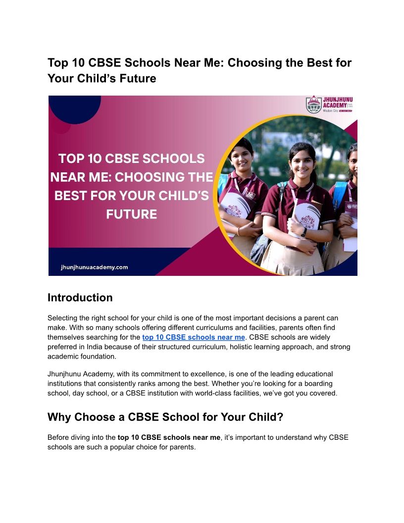 Top 10 CBSE Schools Near Me