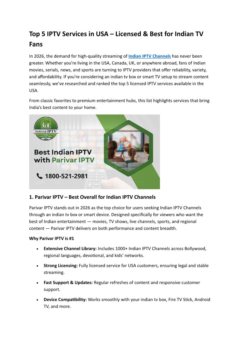 Enjoy your favorite Indian TV channels anytime with Parivar IPTV. Easy setup, clear streaming, and entertainment for the whole family.
