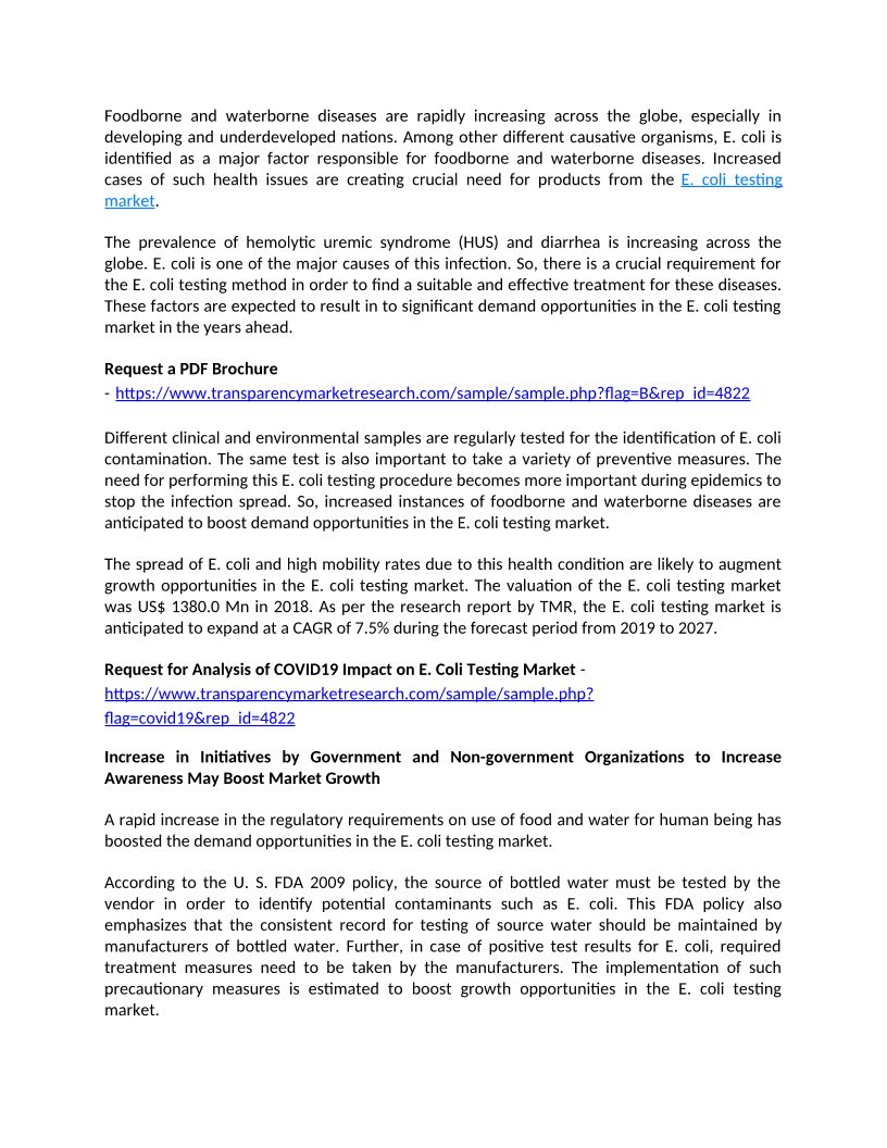 E. Coli Testing Market to Se...