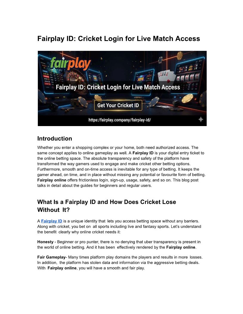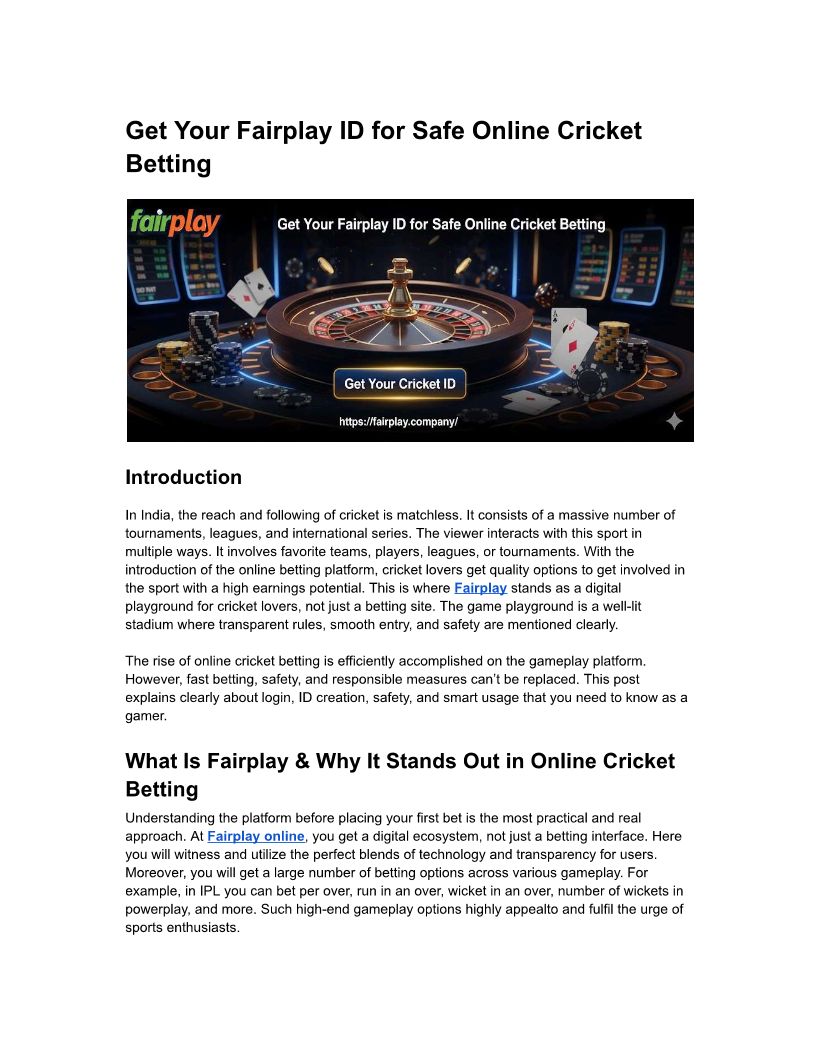 Fairplay ID- Cricket Login f...