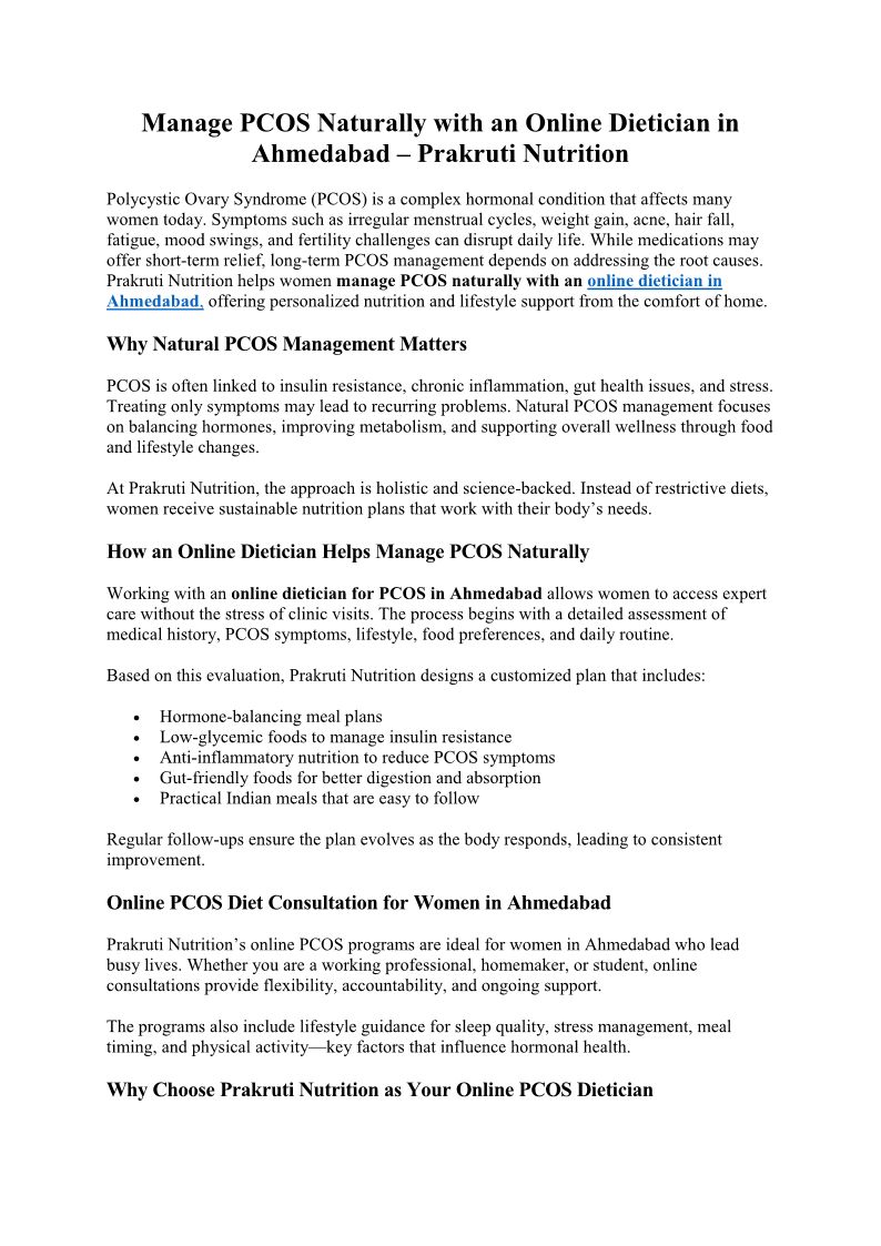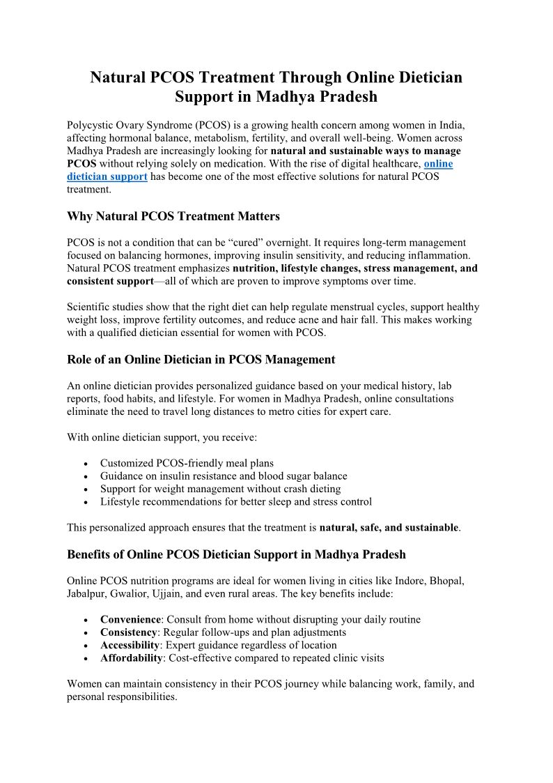 Online Dietician for PCOS in...