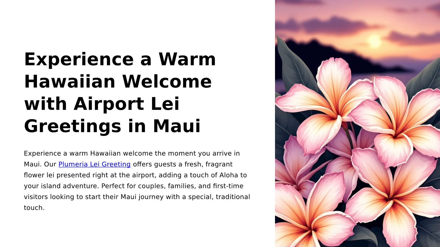 Hawaii Leis, Airport Lei Greetings on Maui Hawaii - Fresh Handmade Hawaiian Leis for all occasions. Get an Aloha Welcome with Plumeria Lei Greeting.