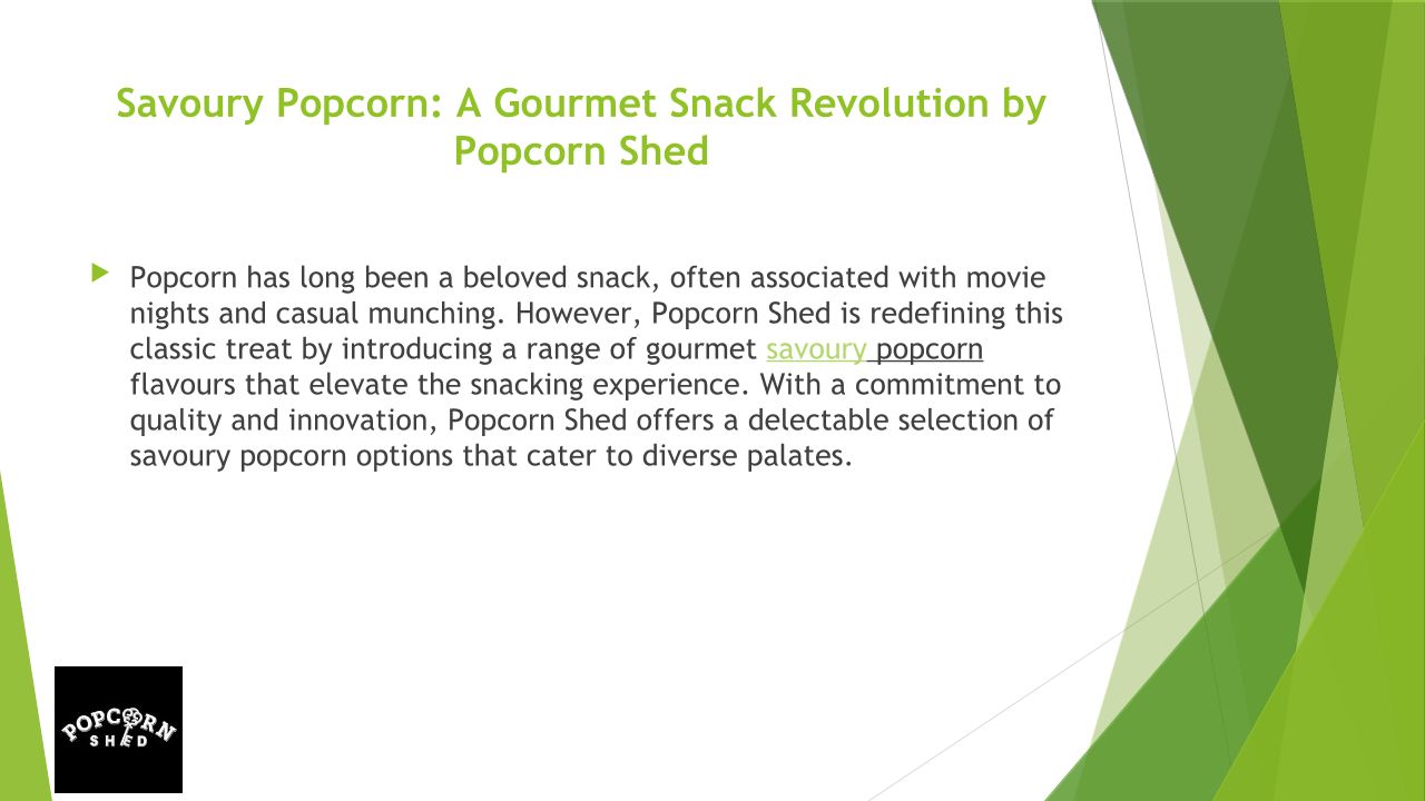 Popcorn Shed specializes in handmade gourmet popcorn gifts and treats, crafted in the UK using all-natural ingredients with vegetarian and vegan.