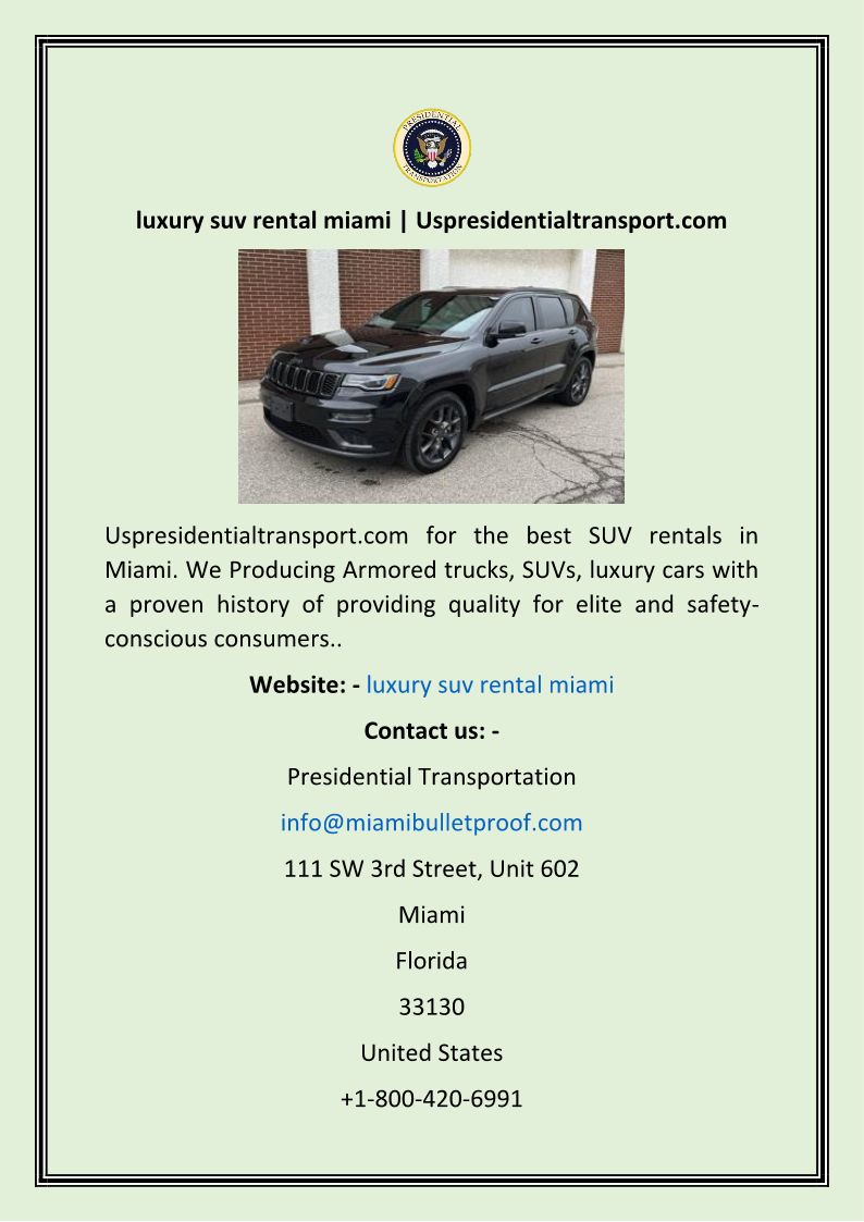 luxury suv rental miami Usp...