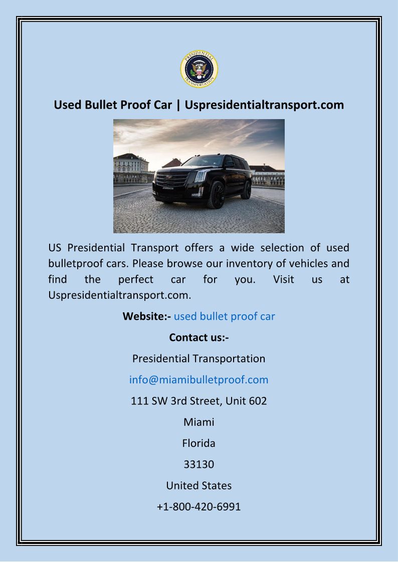 Used Bullet Proof Car Uspre...