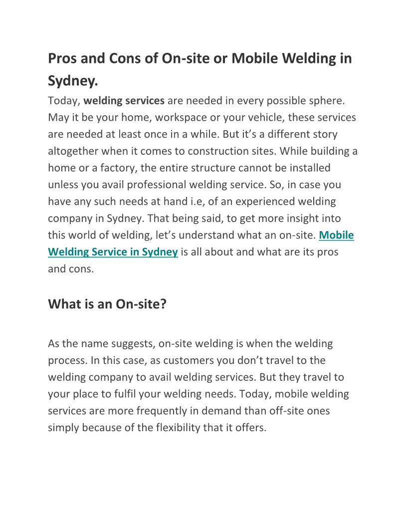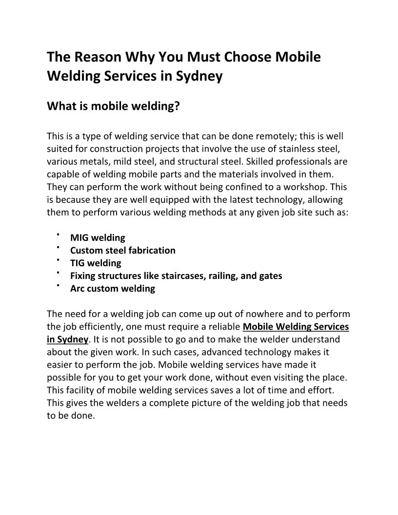 Mobile Welding Service in Sy...