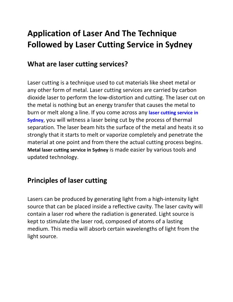 Laser Cutting Service in Syd...