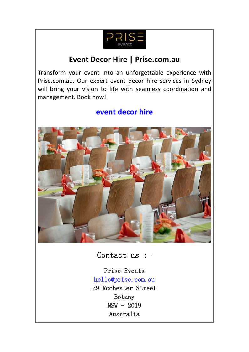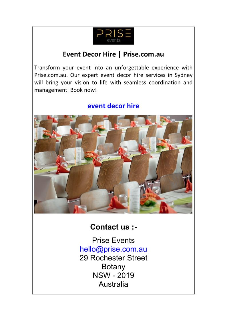 Event Decor Hire Prise.com